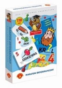 karty wyrazów - 110 szt. , plansza dwustronna, pionki - po 2 w 4 kolorach (8 szt.) , żetony - 40 szt. , instrukcja.