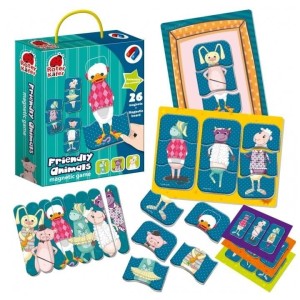 Miękkie, trójwymiarowe elementy są łatwe do trzymania i złożenia dla dziecięcych rączek. Magnetyczne karty obrazkowe ułatwiają układanie i utrzymywanie puzzli.