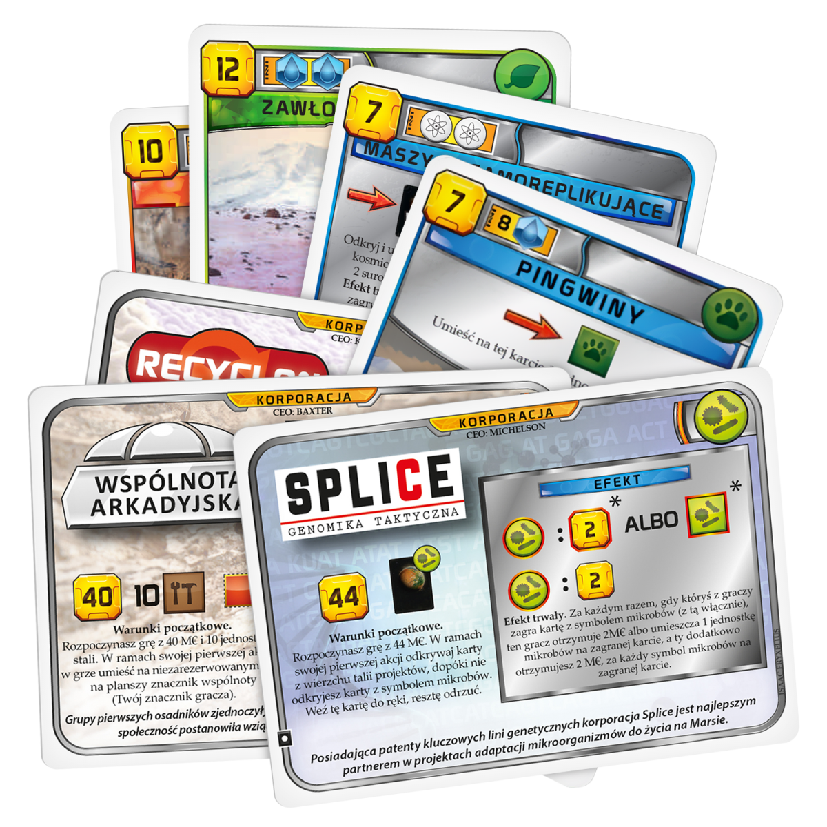 Sprawdź, co pingwiny robią na Marsie, skorzystaj z nowych możliwości wykorzystania nietypowych śnieżnych alg, użyj specjalnych maszyn, dzięki którym z łatwością pozyskasz środki nawet na najdroższe projekty lub po prostu zrób nowy krater w powierzchni Czerwonej Planety hej, przecież jest ich pełno, na pewno nikt nie zauważy! Terraformacja Marsa: Zestaw dodatkowy #1-3 to paczka łącząca 3 pierwsze mini dodatki do kosmicznej gry strategicznej. Zawiera 4 projekty, które czekają na śmiałych inwestorów oraz 3 korporacje, które możesz dorzucić do zwykłej puli, by jeszcze bardziej zwiększyć różnorodność rozgrywek. Czym jest Terraformacja Marsa? To rozbudowana, wielowymiarowa gra strategiczna związana z tematem kolonizacji kosmosu. Uczestnicy wcielają się w przedstawicieli największych ziemskich korporacji, które podjęły się wysiłku zmiany Marsa w planetę zdatną do życia. Nie kieruje nimi jednak wyłącznie dobro ludzkości inwestując w rozmaite projekty biznesmeni będą starali się jak najlepiej wykorzystać dostępne możliwości, by zmaksymalizować zyski i odtrąbić spektakularny sukces.
