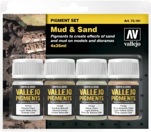 Seria Pigment FX to selekcja pigmentów naturalnych i syntetycznych, która została wybrana ze względu na trwałość, doskonałą odporność na światło słoneczne i praktyczną wielkość cząsteczek (co ułatwia ich mieszanie i nakładanie na modele lub dioramy). Gama pigmentów obejmuje pyłki idealne do postarzania figurek, nakładania efektu erozji - dzięki nim odwzorujemy pył pustynny na gąsienicach czołgu, błoto na obuwiu rosyjskich soldatów, rdzę na helikopterze dostarczającym rannych do Wietnamskich MASHy. Ogranicza nas tylko wyobraźnia. Pigmenty mogą być nakładane w postaci suchej bezpośrednio przy pomocy pędzla lub na mokro przy pomocy Thinnera. Dzięki produktowi Pigment Binder pyłki mogą być używane do tworzenia dużych ilości błota i brudu do pokrywania większych powierzchni. Produkty z grupy Pigment FX można zmywać przy pomocy wody.