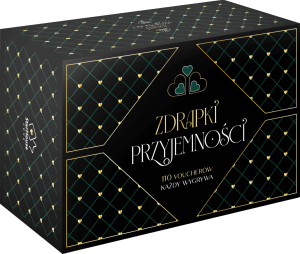 Szukacie czegoś, co podkręci atmosferę w Waszym związku? To możliwe! Już teraz możecie przeżywać wspólnie wspaniałe, pełne wrażeń przygody. Zdrapki przyjemności to klucz do wspólnej zabawy, śmiechu i przyjemności. Każda z nich kryje ekscytujące wyzwania i nagrody, które rozgrzeją Wasze uczucia i wprowadzą nową energię do codzienności. Możecie odkrywać je losowo, wręczać sobie wybrane z nich lub wymieniać je ze sobą, jak chcecie! Każdego dnia powinniśmy czerpać przyjemność z naszego związku, czasem jednak potrzeba dodatkowej motywacji, która pomoże Wam ją sobie wzajemnie zapewnić. Właśnie w tym pomogą Wam Zdrapki przyjemności! W gustownym opakowaniu czeka na Was 110 unikalnych, skrywających nagrody voucherów, którymi obdarzycie siebie nawzajem! To wysokiej jakości produkt, stworzony przez ekspertów specjalizujących się w grach dla par od 15 lat! Wspólne dawanie sobie drobnych przyjemności w związku, jeszcze nigdy nie było tak proste i przyjemne, jak teraz! Podstawą szczęśliwej relacji są pozytywne, łączące nas wspomnienia. Stwórzcie je razem, świetnie się przy tym bawiąc! Po prostu wylosujcie kilka Zdrapek przyjemności i odkrywając je, wypełniajcie inspirujące zadania! Zdrapki przyjemności: Pozwolą Wam lepiej się poznać i odkryć nawzajem swoje upodobania. Zapewnią Wam pomysły na satysfakcjonujące spędzanie czasu razem. Zainspirują Was do odkrywania nowych aktywności, które mogą przerodzić się we wspólne pasje. Zachęcą Was do małych gestów względem drugiej osoby. Sprawią, że będziecie wspólnie przeżywać pełne wrażeń przygody. Rozgrzeją Wasze uczucia i wprowadzą nową energię do codzienności. Wzmocnią Waszą relację i pomogą Wam uczynić ją jeszcze ciekawszą. Dla kogo są Zdrapki przyjemności? Dla tych, którzy pragną zrobić komuś bliskiemu inspirujący prezent. Dla osób, które pragną spędzać wspólnie wartościowy czas. Dla relacji, w których przyda się impuls do zrobienia czegoś nowego. Dla par, które pragną wzmacniać łączącą je więź oraz wspólnie tworzyć pozytywne wspomnienia. Dla związków, szukających inspirujących pomysłów na randki.