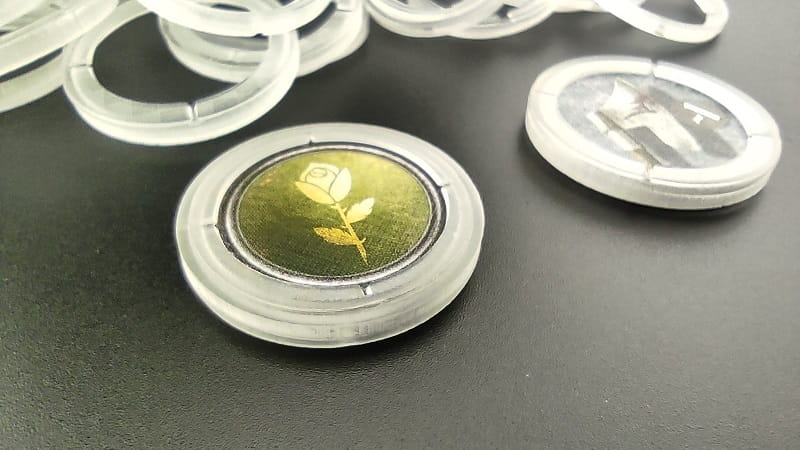 Protektory mają tolerancję rozmiaru +0,5 mm. Oznacza to, że w przypadku rozmiaru 25 mm, maksymalna średnica żetonu może wynieść 25,5 mm.