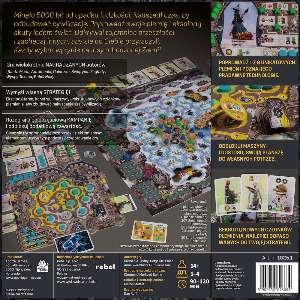 Revive to angażująca, strategiczna gra planszowa, w której wcielisz się w przywódcę 1 z 6 plemion, z których każde dysponuje unikalną wiedzą i możliwościami. Aby wygrać, będziesz eksplorować teren, konstruować maszyny i rekrutować nowych członków plemienia, aby zbudować najwspanialszą cywilizację. W 5-częściowej kampanii odkryjesz dodatkowe elementy gry, by finalnie cieszyć się złożoną i wielowymiarową planszówką.