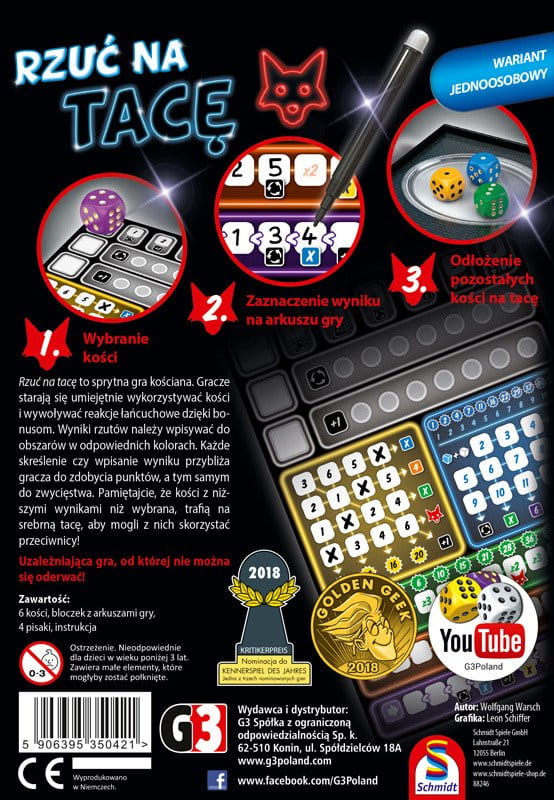 Pamiętajcie, że kości z niższymi wynikami niż wybrana, trafią na srebrną tacę, aby mogli z nich skorzystać przeciwnicy! Wygrywa gracz, który na koniec gry (po określonej liczbie rund), ma najwięcej punktów.