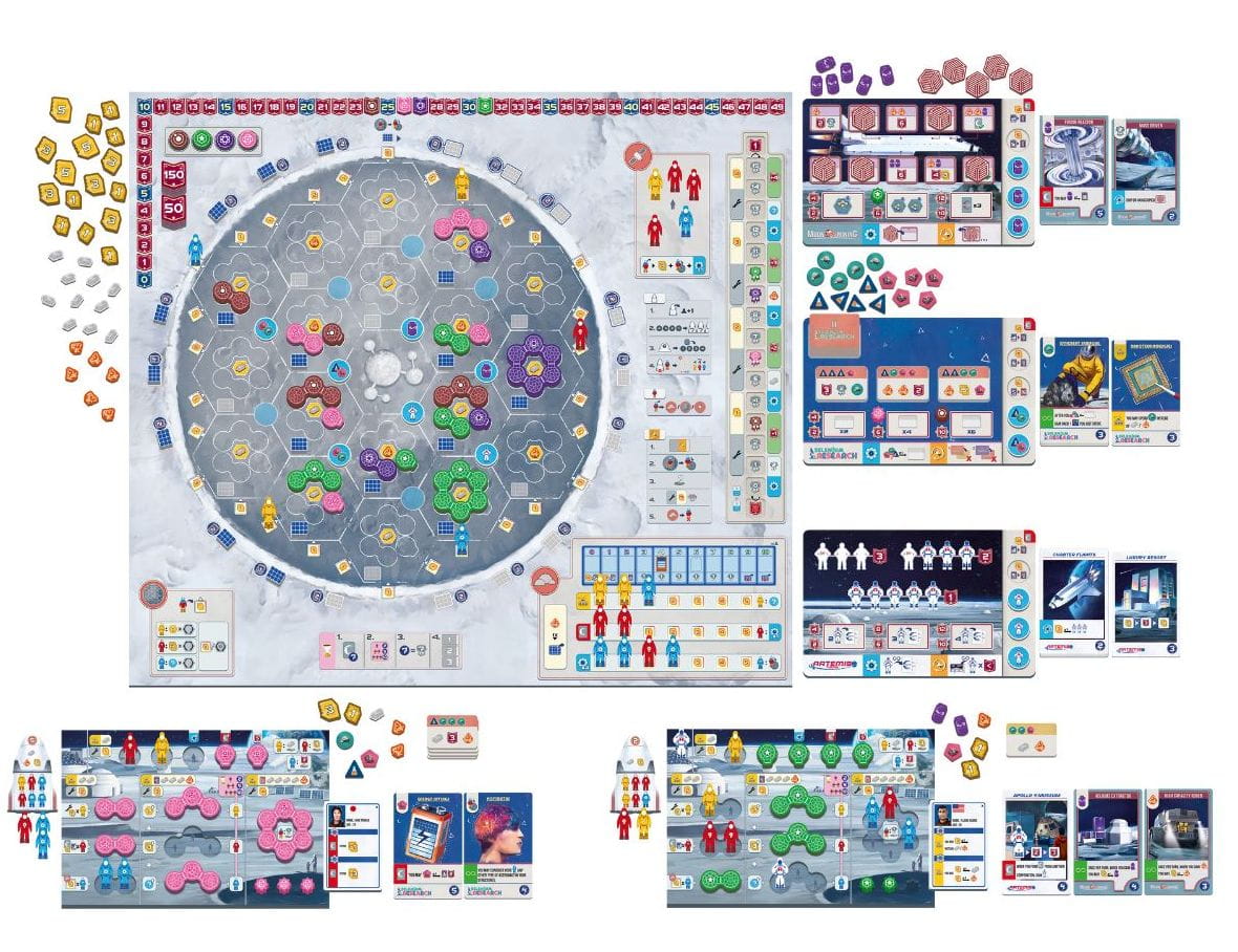 Umieszczaj astronautów na Księżycu, aby budować struktury, pozyskiwać zasoby i realizować projekty korporacyjne. Wybrane na początku gry korporacje (losowo 3 z 7 dostępnych) wprowadzają unikalne zasoby, projekty, zdolności oraz dodatkowe sposoby punktacji.