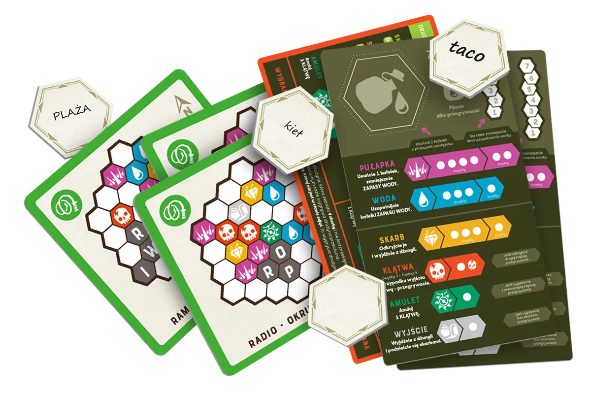 Zarządzanie zasobami: Masz ograniczoną liczbę kafelków, na których zapisujesz wskazówki. Musisz odwiedzać źródła wody, aby uzupełnić zapasy, inaczej Twoja drużyna utknie w dżungli na zawsze.
