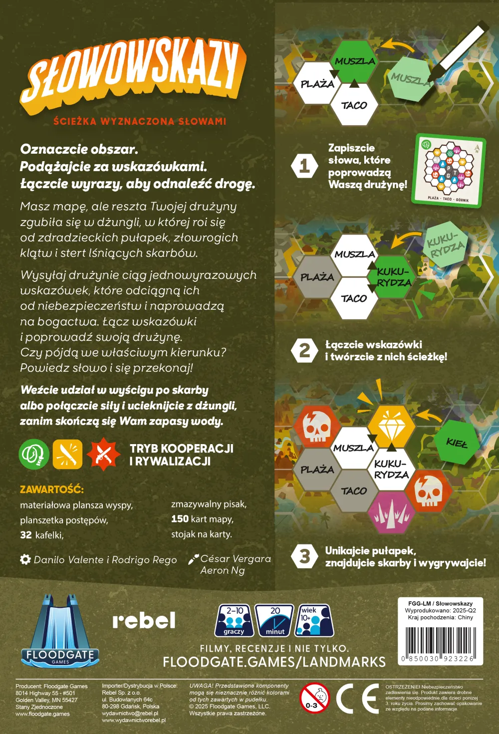 Słowowskazy to innowacyjna gra skojarzeniowa, która rzuca wyzwanie Twojej kreatywności językowej. Wcielasz się w rolę Przewodnika, który jako jedyny widzi mapę wyspy. Twoim zadaniem jest podawanie jednowyrazowych wskazówek, które mają nakierować resztę grupy na odpowiednie pola.