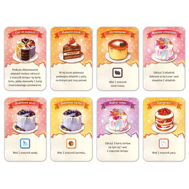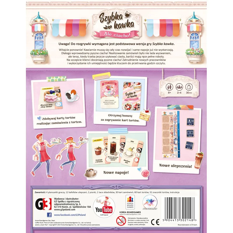 Aromat świeżo parzonej kawy to dopiero początek! W Twojej kawiarni nadszedł czas na wielkie zmiany – goście domagają się czegoś słodkiego do swoich ulubionych napojów. Szybka Kawka: Ale ciacho! to pierwsze duże rozszerzenie do hitowej gry zręcznościowej, które wprowadza do rozgrywki zupełnie nowy poziom głębi, smaku i... strategicznego planowania. Czy Twój zespół zdoła zaserwować pyszne ciasta, nie rozlewając przy tym ani kropli gorącej kawy?
