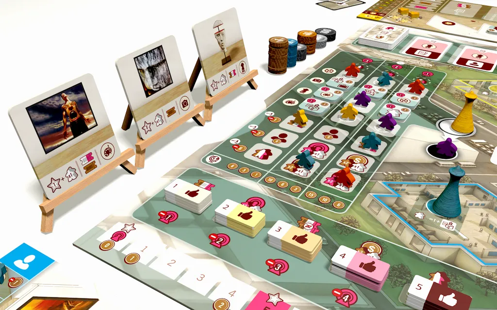 Kontrakty i cele: Realizuj międzynarodowe kontrakty, by sprzedawać dzieła z zyskiem i budować reputację, która otworzy przed Tobą nowe możliwości punktacji na koniec gry.