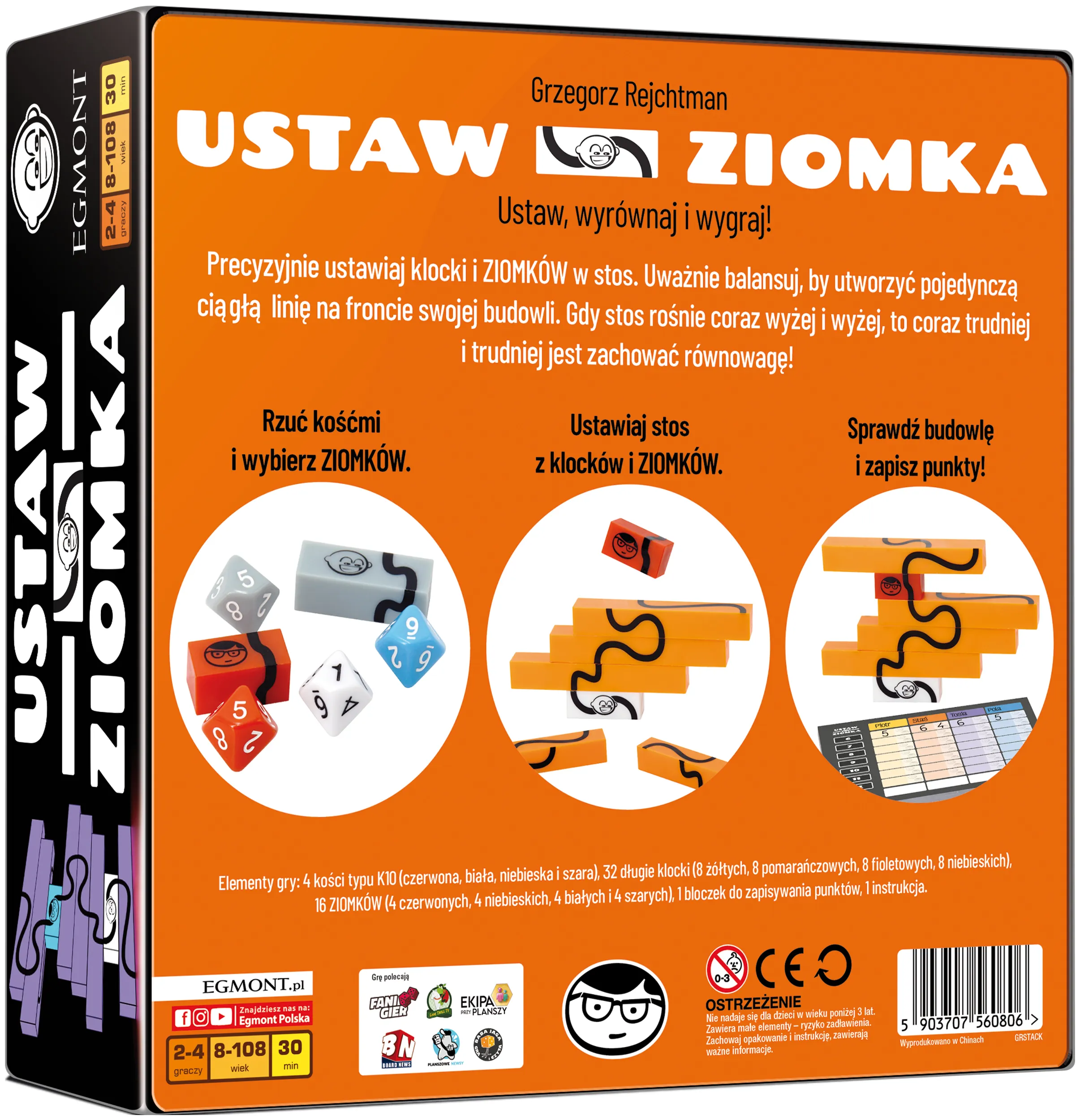 Przygotuj się na emocjonujące wyzwanie, w którym liczy się nie tylko bystre oko, ale i pewna ręka! Ustaw Ziomka! to nowa, dynamiczna gra logiczna Grzegorza Rejchtmana – autora światowego hitu Ubongo. Tym razem zamiast płaskich łamigłówek, gracze zmierzą się z trójwymiarowym wyzwaniem konstrukcyjnym. Czy zdołasz opanować chaos i wznieść budowlę godną mistrza, zanim zrobią to inni?