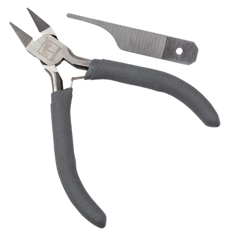 Narzędzia zostały zaprojektowane z myślą o prostocie użytkowania i ergonomii. W skład zestawu wchodzą cążki startowe oraz skrobak do linii podziału formy. Cążki posiadają gumowaną rękojeść oraz mechanizm sprężynowy, co znacząco redukuje zmęczenie dłoni podczas dłuższej pracy. Skrobak został natomiast zaprojektowany tak, aby z łatwością docierać do trudno dostępnych miejsc na figurkach, dbając o czystość i detale każdego modelu.