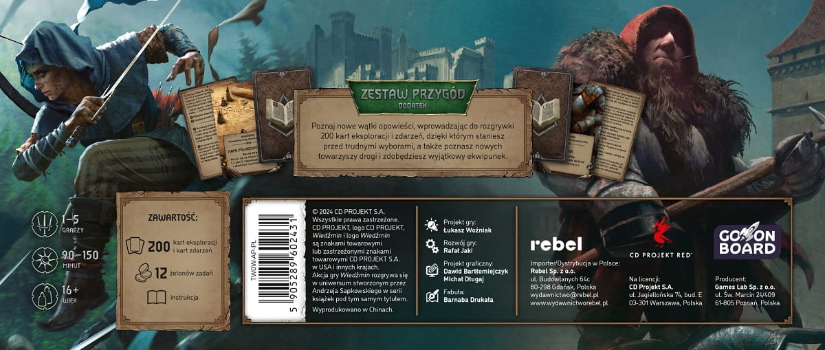 Wiedźmin: Stary Świat - Zestaw przygód to rozszerzenie wprowadzające do rozgrywki 200 kart eksploracji i zdarzeń, dzięki którym staniesz przed trudnymi wyborami, a także poznasz nowych towarzyszy drogi i zdobędziesz wyjątkowy ekwipunek.