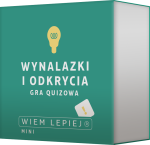 Wiem lepiej: Wynalazki i odkrycia to 60 pytań, które sprawdzą Waszą wiedzę o najważniejszych postaciach i zdobyczach świata nauki. Możecie odpowiadać na pytania tylko z tej kategorii, ale też wykorzystać zestaw jako dodatek do taktycznej gry quizowej Wiem lepiej. W pudełku znajdziesz płytkę kategorii, którą możesz dołączyć do puli podstawowych lub zastąpić nią jedną z nich.