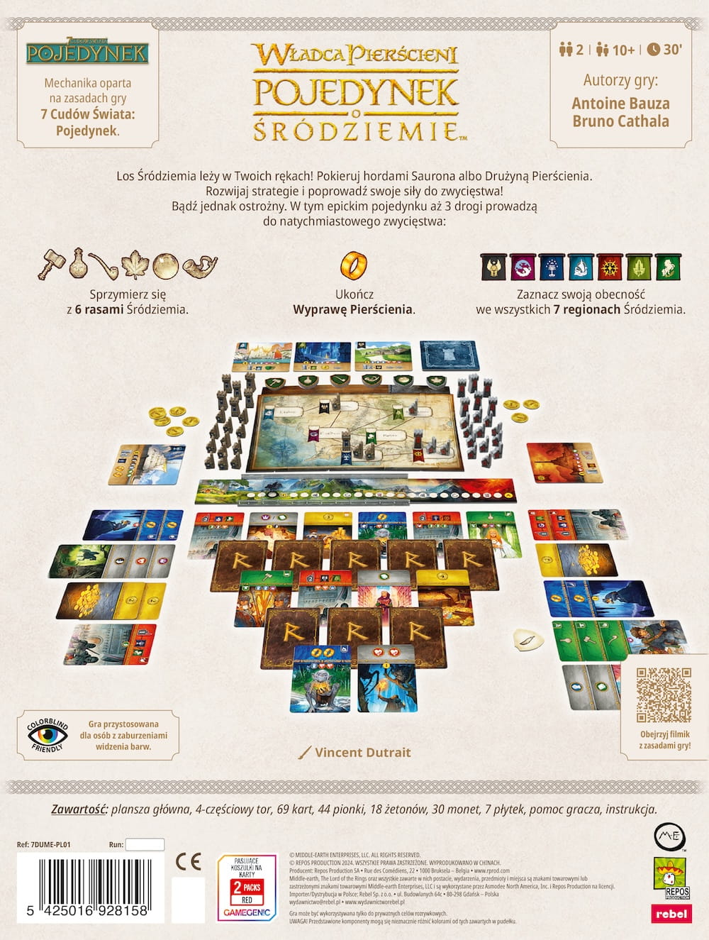 Władca Pierścieni: Pojedynek o Śródziemie to wyjątkowa gra strategiczna oparta na zasadach popularnego 7 Cudów Świata: Pojedynek.