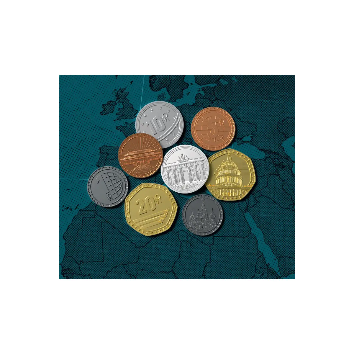 Unikalne Wzornictwo: Każda moneta została zaprojektowana z myślą o jednym z czterech supermocarstw. Rewersy i awersy zdobią symbole narodowe i motywy charakterystyczne dla potęg walczących o dominację, co nadaje rozgrywce historycznego sznytu.